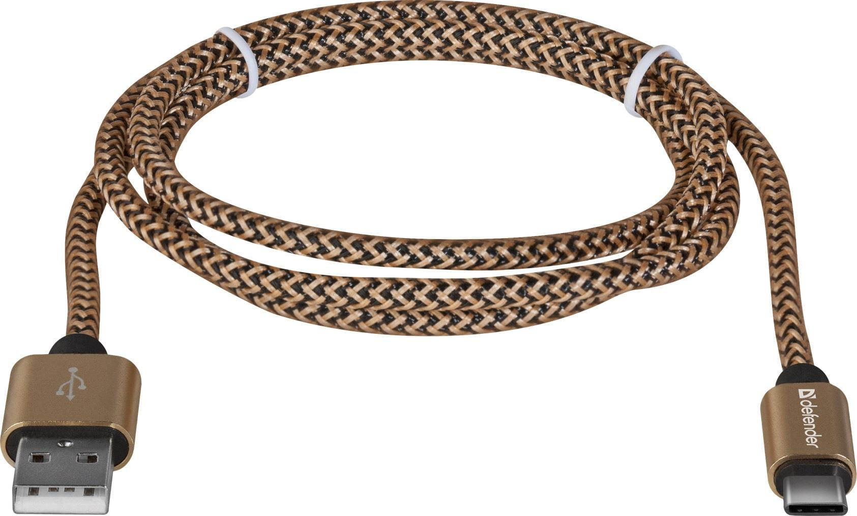 Kabel USB Defender AM-TYPE C 1m 2,1A złoty