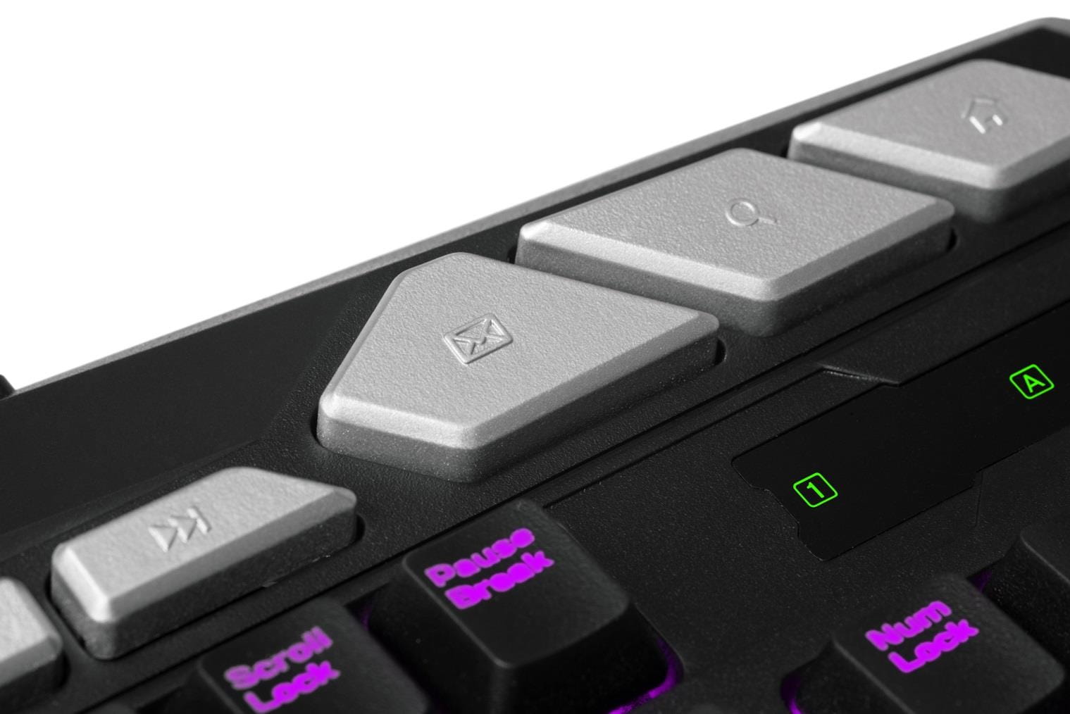 przełączenie przycisków WASD; Rozpoznaje jednoczesne naciśnięcie klawiszy; 3 kolory podświetlenia; Gorące przyciski szybkiego dostępu do różnych aplikacjii; Podświetlane przyciski i symbole; Kąt nachylenia klawiatury jest regulowany przy pomocy nóżek; Regulowana jasność podświetlenia; Regulowana częstotliwość próbkowania; Spód metalowy zwiększa trwałość; Ferrytowy filtr szumów; Pozłacane złącze USB; Wodoszczelna konstrukcja klawiatury; Możliwość wyboru jednego koloru podświetlenia; Możliwość wyłączenia podświetlenia; Wymienne przyciski (WASD + strzałki) w zestawie; BONUS SPECJALNY - kod do gry Star Conflict. |