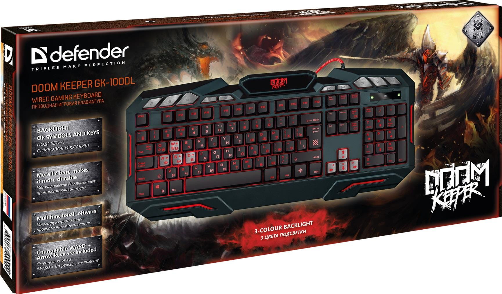 | Opis ogólny | Klawiatura przewodowa Defender DOOM KEEPER GK-100DL podświetlana gaming |
